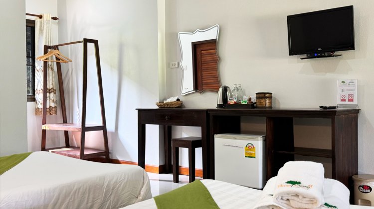 ROOM Amenities แอร์ ทีวี ตู้เย็น ฟรีน้ำดื่ม โต๊ะเครื่องแป้ง ชั้นเก็บของ ไฟหัวเตียง ปลั๊กไฟ 2จุด ฟรีไวไฟ ที่จอดรถส่วนตัว 1คัน ระเบียงหน้าห้อง ห้องน้ำเเยกโซน เครื่องทำน้ำอุ่นทุกห้อง ฝักบัว อ่างล้างหน้า ชักโครกเเบบนั่ง เครื่องระบายอากาศในห้องน้ำ